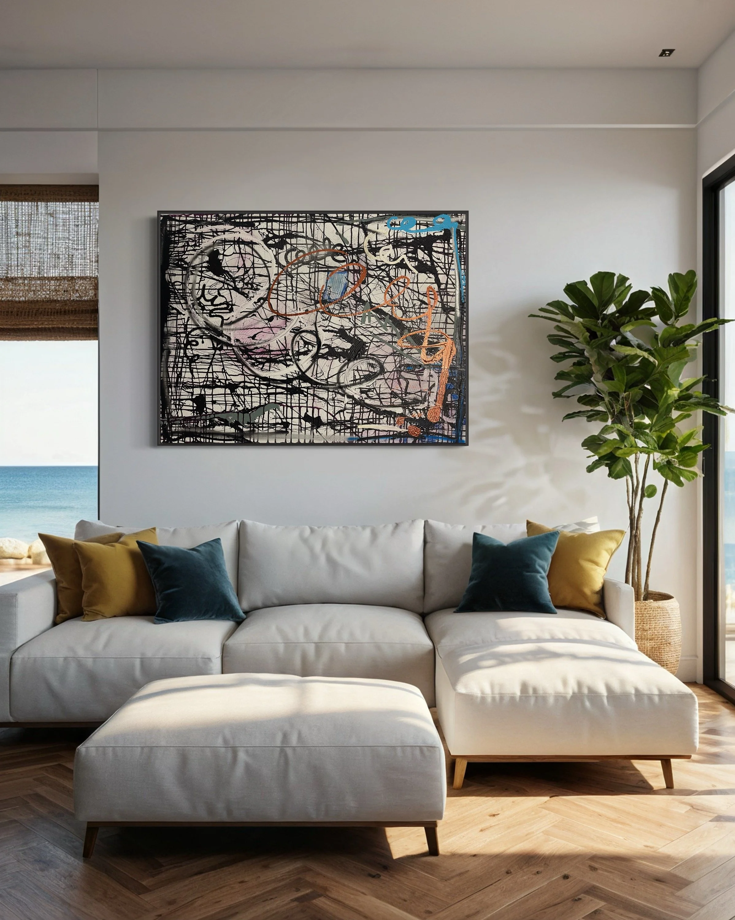 "they say the sea is cold” 202436 x 48 - Acrylic, Ink, Oil, Spray Paint Interested in this piece or would like more information? Email Elliott